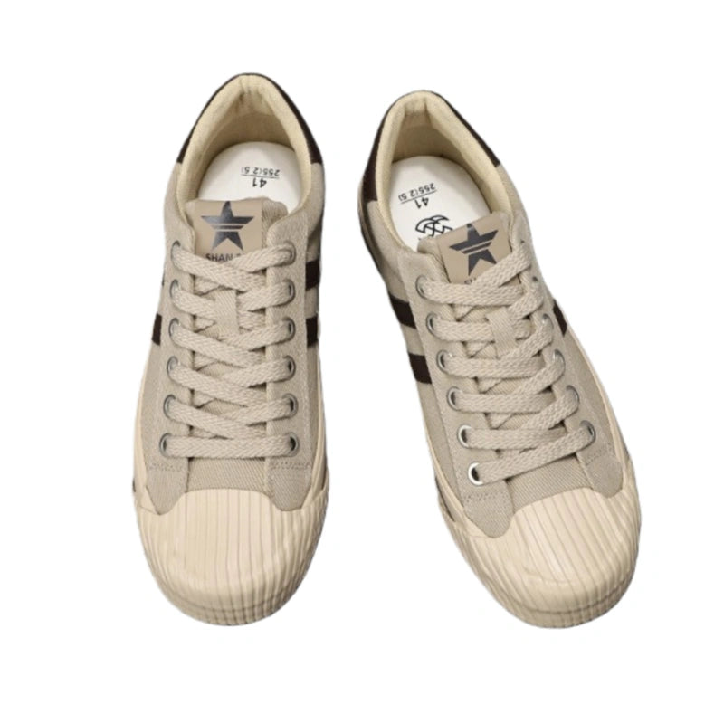 Dessa låga herrsneakers med snörning är tillverkade för vardaglig stil och komfort och kombinerar en ventilerande canvas-ovandel, lättviktskonstruktion och en slitstark gummiyttersula för enkelt urbant bruk.