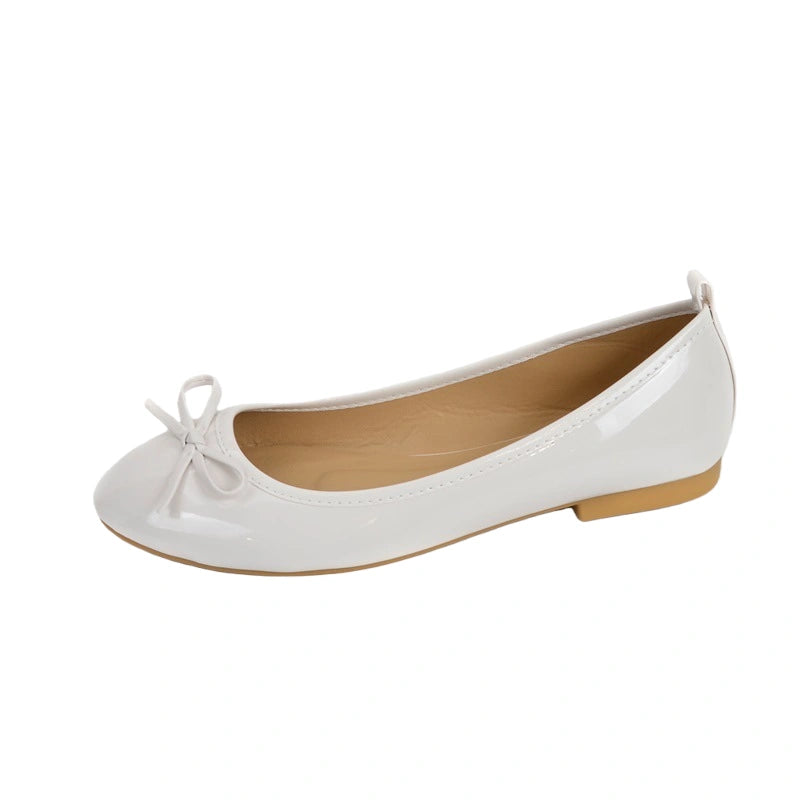 En charmig rosettdetalj ger en lekfull men ändå raffinerad look, medan den klassiska runda tån ger en avslappnad och bekväm passform för många timmars användning. Dessa platta skor är färdiga med en lätt, halkfri TPR-yttersula och säkerställer stabila, dämpade steg på både inomhus- och utomhusytor.