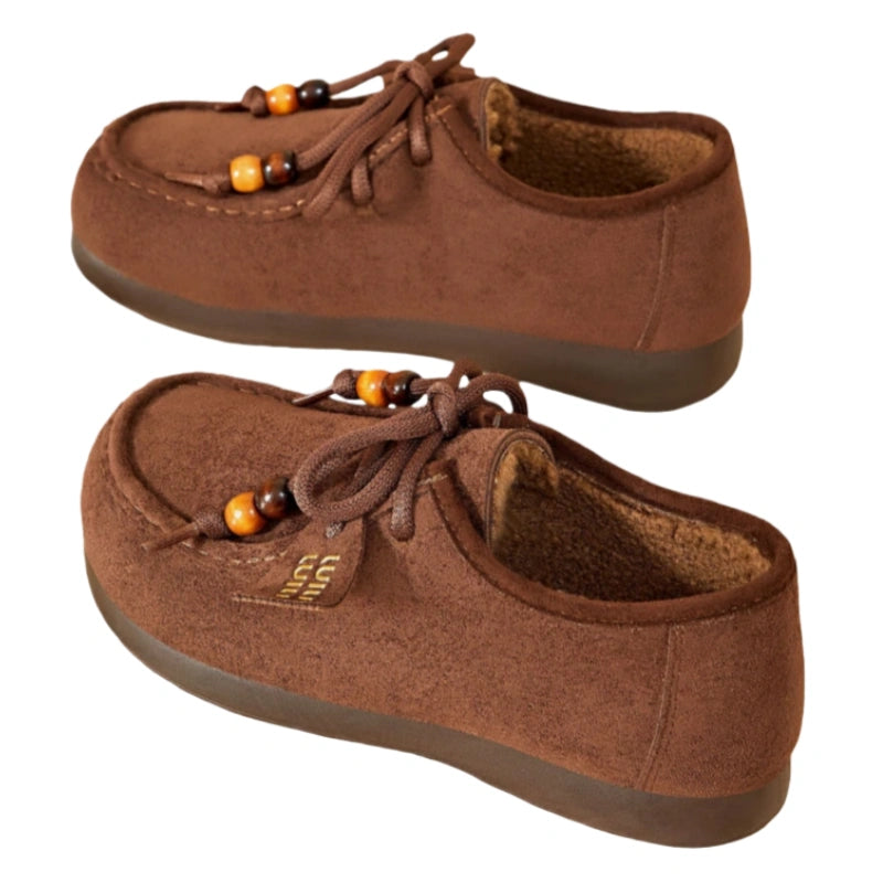 Den lätta PU-sulan ger fri rörlighet, medan den halkfria PVC-yttersulan med upphöjd slitbanedesign ger ett tillförlitligt grepp även på våta ytor. Utsökta vintage pärlbesatta detaljer gör dessa vinterträskor perfekta för vardagskläder, loungewear och utomhuspromenader.