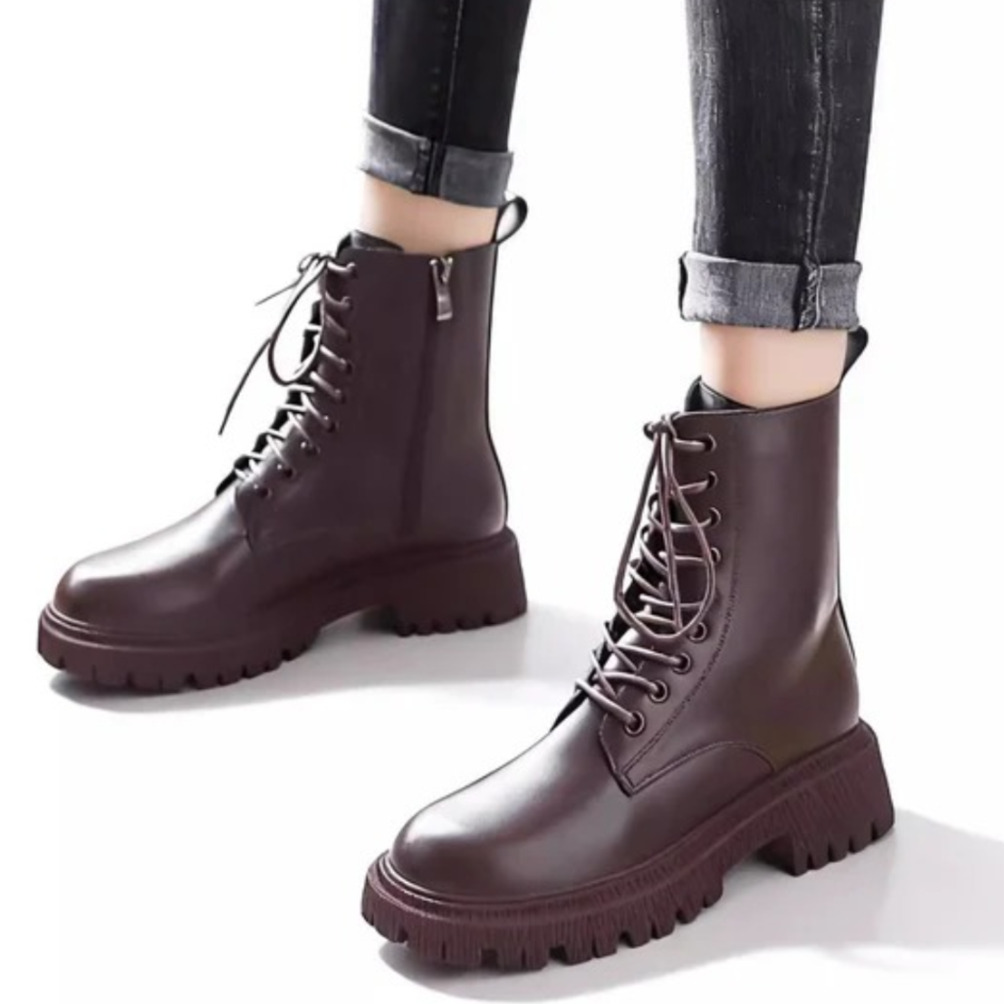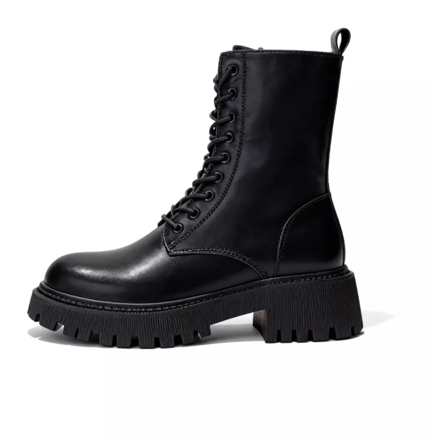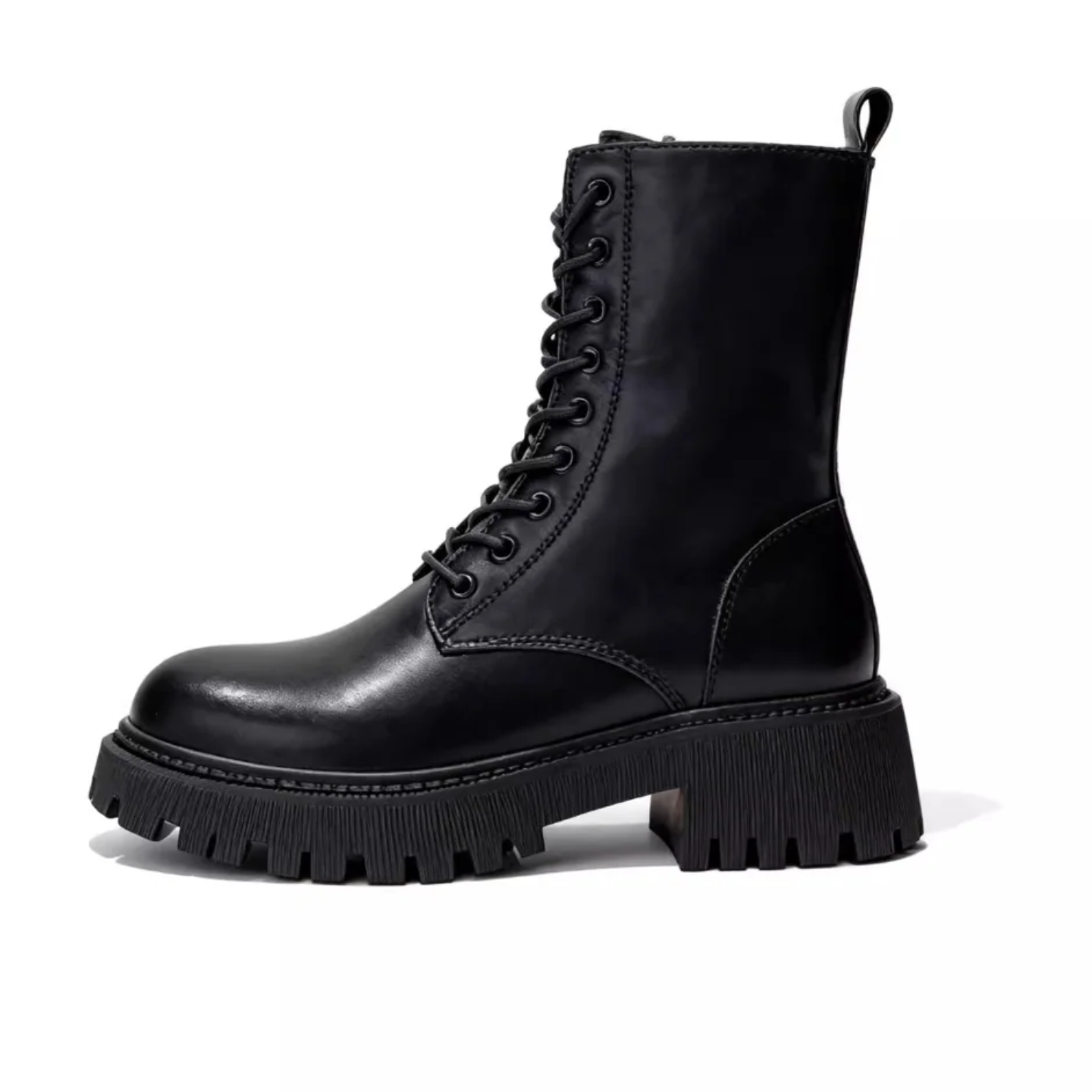 Denna stiliga Martin-stövel är tillverkad i andningsbart PU-läder och har en vattentät plattformssula som skyddar mot regn och snö. Med sitt midjehöga skaft och framtida snörning ger den både en smickrande passform och justerbar komfort. Den slitstarka, halkfria gummisulan erbjuder stabilitet och trygghet i varje steg.