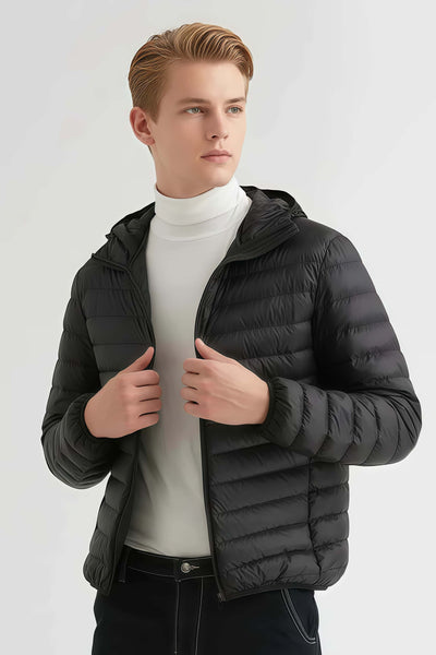 Denna lätta dunjacka är fylld med 90 % premiumvitt anddun, vilket ger värme och komfort utan att kännas begränsande. Vindtät krage med huva, nylontyg med god glans Funktioner inkluderar dolda dragkedjefickor, dragsko i ärmsluten och...