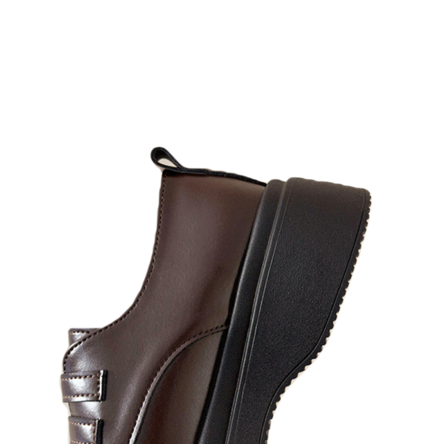 Denna eleganta lädersko är framtagen för kvinnor som vill kombinera klassisk brittisk stil med modern komfort. Ovandelen i äkta, högkvalitativt läder ger en lyxig känsla och imponerande hållbarhet, samtidigt som den varmfodrade insidan håller fötterna sköna och varma under kyliga vårdagar. Tack vare den stadiga plattformsdesignen får du en subtil höjdökning och bättre balans utan att kompromissa med bekvämligheten.