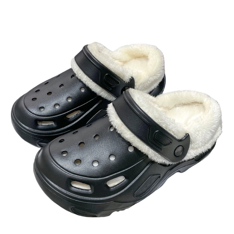 Dessa mångsidiga vinterträskor i EVA håller dig varm och bekväm hela vintern. Den justerbara hälremmen gör att du enkelt kan växla mellan lägena för avslappnade tofflor och stabila sandaler. Det urtagbara, mjuka fodret ger värme och komfort, vilket håller dig mysig även i kallt väder. Den lätta, hållade EVA-sulstrukturen erbjuder responsiv dämpning i varje steg och en bekväm känsla.