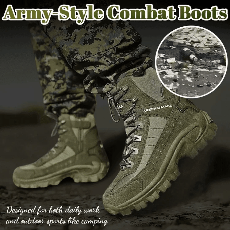 Mina herrar, vill ni ha ett par skor som kombinerade halkskydd , starkt grepp , stöttålighet , vattenavvisande egenskaper , skydd mot sand och grus samt en dold höjdökning , lämpliga för både arbete och dagligt bruk? Idag är de här – 5AA Multifunktionell Taktisk Stövel.