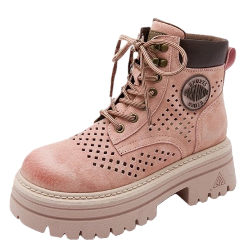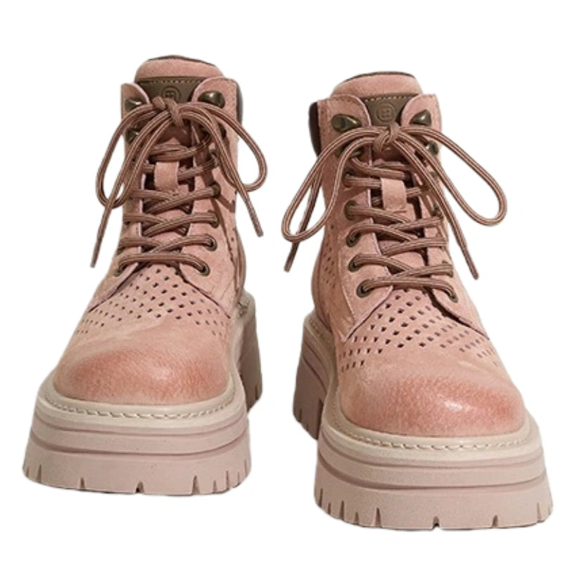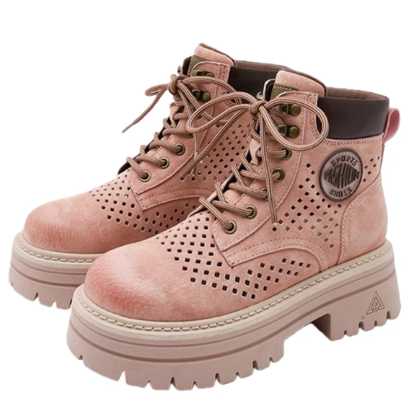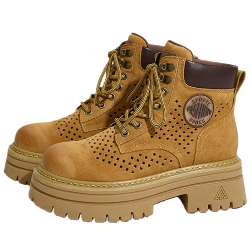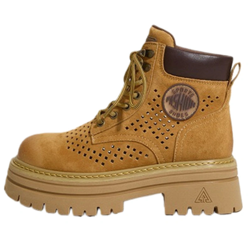 Dessa perforerade stridsstövlar är tillverkade av premium svinläder av högsta kvalitet, vilket hjälper dig att skapa snygga looks från sommar till höst. Den 6 cm höga hälen med en 2 cm dold plattform ger en slående stil, andningsförmåga, komfort och hållbarhet, vilket gör dem idealiska för streetwear, vardagskläder och edgy looks.