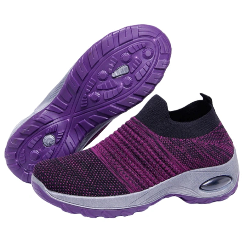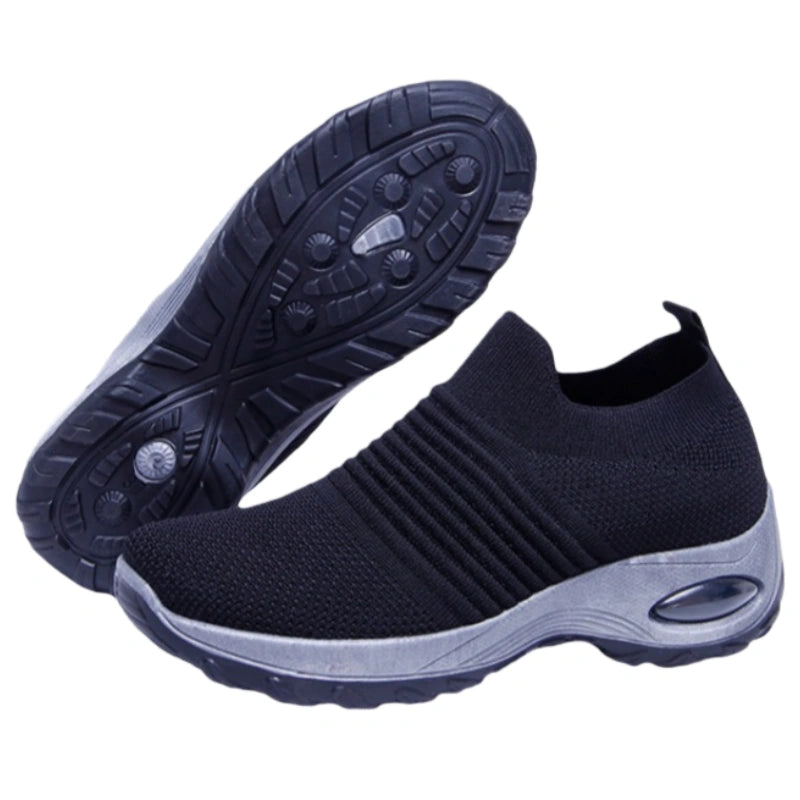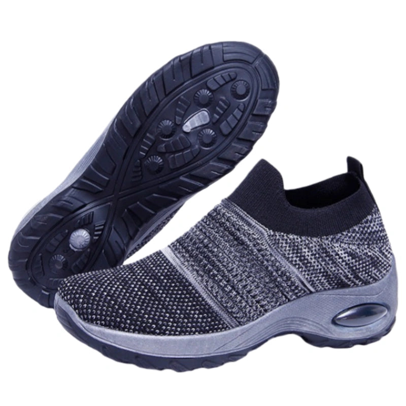 En strumpliknande öppning säkerställer enkel på- och avtagning, och den vadderade EVA-innersulan ger extra komfort för dagliga promenader. Dessa skor är färdiga med en halkfri PVC-yttersula med djupa spår och ger pålitligt grepp och hållbarhet för vardagliga aktiviteter.