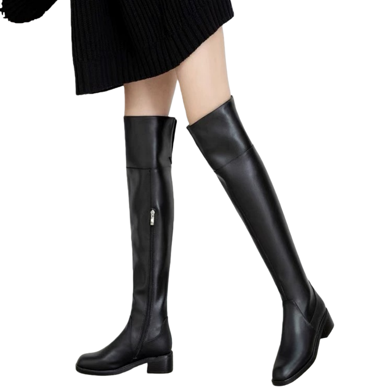 Dessa höga ridstövlar har en elegant och slimmad skärning som följer benets naturliga form, vilket ger en stilren och sofistikerad look. Den höga designen som sträcker sig över knäet förlänger benen på ett smickrande sätt, vilket skapar en vacker siluett. Stövlarna kombinerar både funktion och mode, och passar perfekt för allt från vardagliga outfits till mer dressade tillfällen. Den klassiska höga modellen ger ett lyft både i stil och komfort, vilket gör dem till ett mångsidigt val för varje garderob.